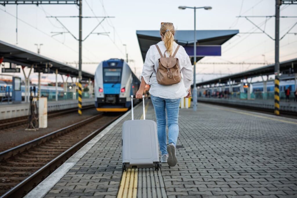 Woman with luggage at train stationWoman with luggage at train station