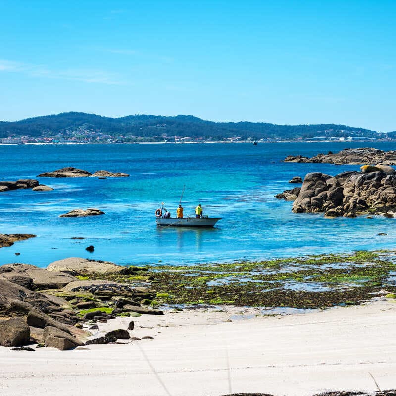 All around the island, it’s whitewashed houses, narrow streets, and that unmistakable maritime vibe you can feel in every corner. Arousa’s main attractions, however, are its wild beaches, often lined with soft, golden sands and calm waters.